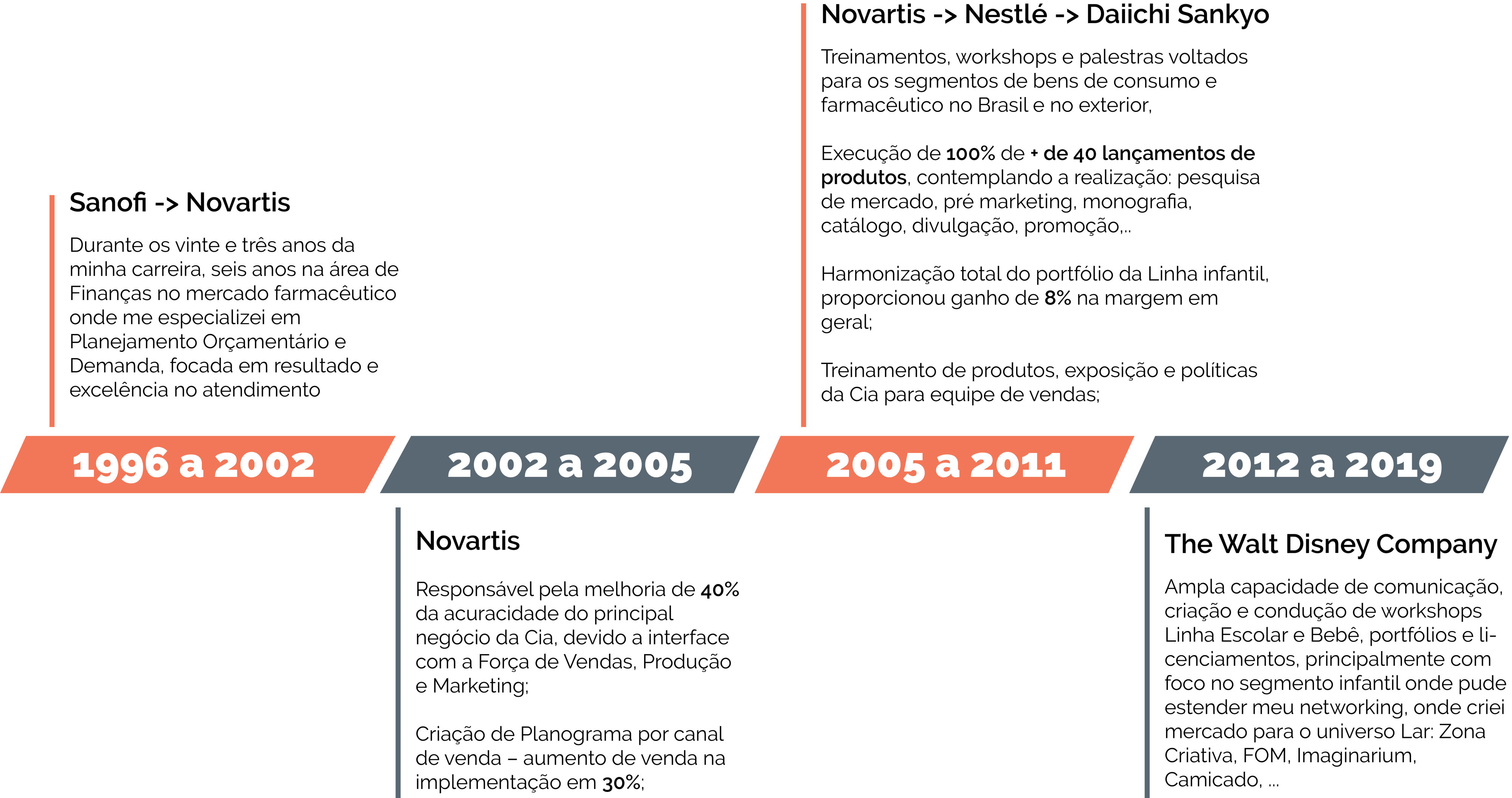 Após reconhecimento dos resultados, foi promovida para a área de Marketing, liderou Projetos, preparou e conduziu diversos treinamentos, workshops e palestras voltados para os segmentos de bens de consumo e farmacêutico no Brasil e no exterior.
